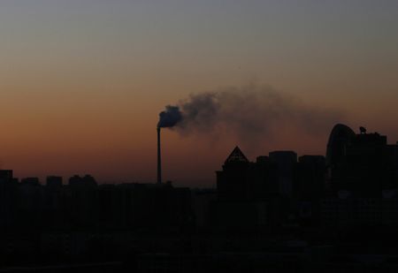 Smoke rises from a chimney of a cogeneration plant in Beijing