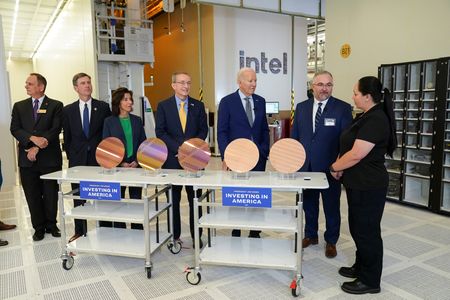 CHANDLER, Arizona (Reuters) -President Joe Biden awarded Intel nearly $20 billion in grants and loans on Wednesday, marking the U.S. government’s largest outlay to subsidize leading-edge chip production and supercharging the company’s domestic semiconductor chip output.