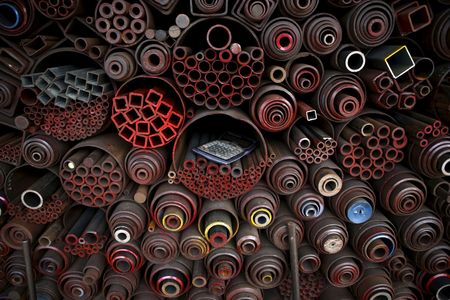 A pocket calculator is seen on steel products stacked at